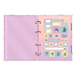 O Stitch (também conhecido como Experimento 626) é um dos personagens mais queridos e divertidos do universo da Disney. O Caderno Argolado Sem Lombo busca retratar o personagem no mundo das redes sociais, com elementos e cores características em sua composição.
