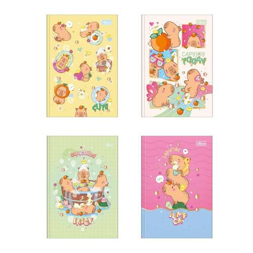 O Caderno Brochura Capa Dura 1/4 Capyclub 80 Folhas da Tilibra é perfeito para você que busca uma opção para organização da rotina de estudos com visual com ilustrações divertidas de capivara.