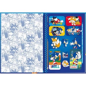 O Caderno Brochura Capa Dura Sonic 48 Folhas possui capa dura com a parte interna decorada, folha dupla de adesivos e folhas pautadas. Ideal para o dia a dia na escola.