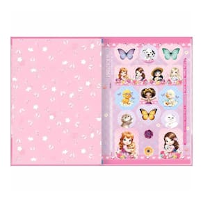 Capa: com detalhe metalizado e dura . Folha de adesivos: dupla . Folhas: pautadas . Miolo . Parte interna da capa decorada . Produto certificado: FSC . Formato: 200mm x 275mm . Gramatura: 56 g/m² . Número de folhas: 48 folhas.