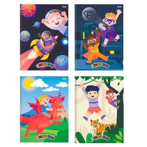 caderno dos pimpolhos de capa dura e estampas que todas as crianças irão amar essa é uma coleção ideal para o público de crianças o caderno conta com 96 folhas e com a gramatura 56gr. O caderno possui lindo formado para o estudo, as crianças irão vão amar esse caderno garanta já o seu