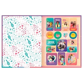 características: - folha grossinha. - 1 matéria. - papel 56g. - 80 folhas. - cor: colorido. - capa: dura. - folhas: com pauta. - adesivos. Dimensões do caderno: 27,5 cm x 20 cm. Formato: 200 mm x 275 mm. Composição: - papel.