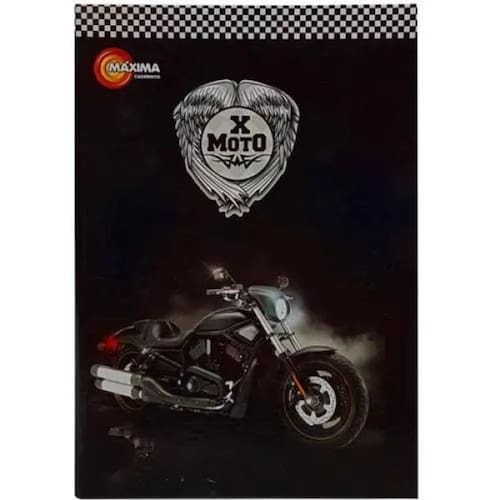 Caderno brochurinha x moto 80 folhas - máxima volte as aulas com grande estilo, com o caderno universitário. Com folhas personalizadas, capas resistentes e com lindas estampas, este caderno fará com que você tenha cada vez mais vontade de estudar personagem: x-moto.