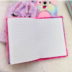 Com capa dura e forro de pelúcia, este caderno tem um toque super macio.