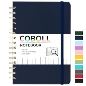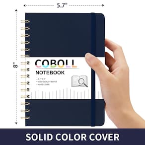 Caderno/diário pautado — cadernos com capa dura e papel grosso premium, 8" x 5,7" (excluindo espirais), caderno/diário espiral universitário, encadernação forte de dois fios, bolso traseiro