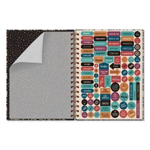 Capa dura, miolo pautado com 80 folhas, formato 17,3 cm x 23,5 cm, papel offset 90 g/m2 a tinta das canetas não passa para o outro lado , encadernação wire-o e elástico para fechamento. Acompanha envelope resistente para documentos e folha de adesivos. Marca: Não Informado