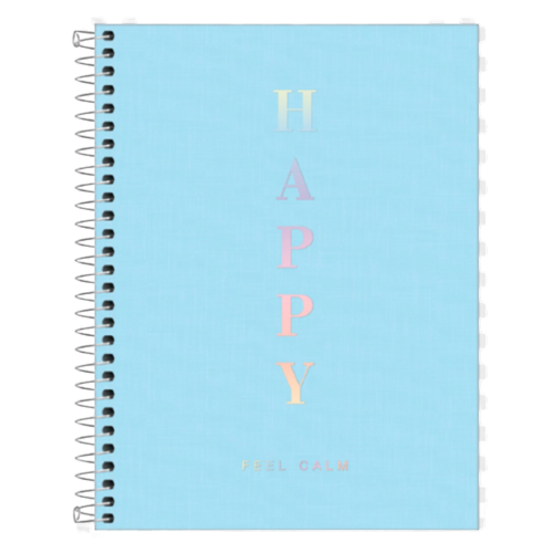 O Caderno Espiral Capa Plástica Colegial 1 Matéria Happy Azul 80 Folhas possui formato inovador e compacto, ideal para quem gosta de praticidade. Possui capa dura com a parte interna decorada, bolsa de papel decorada, folha com adesivos funcionais e folhas pautadas destacáveis.