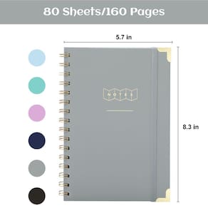 Caderno espiral de capa dura, diário de caderno universitário, caderno espiral pequeno A5, 5x7, 160 páginas, cadernos espirais para trabalho, caderno de anotações estéticas para mulheres e homens, material escolar, cinza