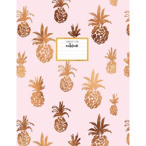 Caderno de composição: abacaxi rosa claro e marrom, caderno para anotações escolares, capa mole, 8,5 x 11, tamanho carta, 110 páginas.