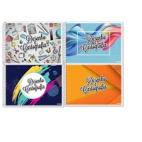 Caderno de desenho e cartografia O caderno spiral possui materiais de excelente qualidade que resistem ao transporte e a rotina do dia a dia É perfeito para ser utilizado no curso, escola ou faculdade. Capa dura 96 folhas brancas Formato: 275mm x 200mm Capa: Capas de diversos modelos e linhas. Será enviado , sendo impossível escolher a capa.