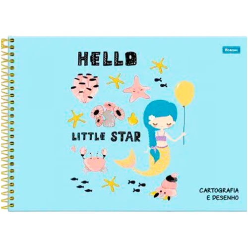 O Caderno de Cartografia e Desenho Espiral Capa Dura Sereia 80 Folhas possui capa dura e folhas para colorir.