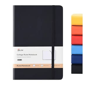 Caderno de empresas/jornal de capa dura tamanho A5: o caderno clássico com forro pautado de 5,5 x 8,2 polegadas apresenta uma capa de couro PU durável e macia, 200 páginas.