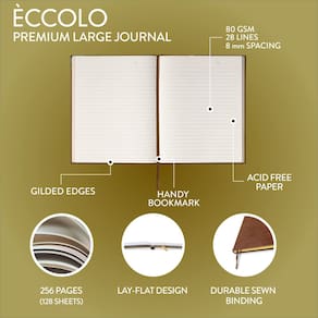 Bela arte, artesanato impecável e uma longa história de atender às suas necessidades de materiais de papelaria. Combine-os e o que você recebe? um diário Eccolo. Uma jornada vitalícia que está esperando para acontecer e ser anotada o aguarda. Um episódio criativo, alcance seus sentimentos, belas aventuras de viagem ou simplesmente listas de tarefas esperando para se tornarem completas e acompanhá-lo em cada passo em direção aos seus sonhos. A grande variedade de diários de 20 x 25 cm oferece infinitas opções para escolher e todos os recursos para este diário de capa dura. Um diário para homens, mulheres, adolescentes, crianças e todas as idades. Prático e resistente, leve-o com você aonde quer que vá, anote ideias e anotações em uma reunião ou viaje com ele e comece a escrever história nele. Feito de materiais de qualidade premium, o caderno Eccolo apresenta um design de capa dura durável. Design abstrato, capa de citações empoderadora ou um caderno de arte minimalista, qual é a sua escolha? Dentro, você encontrará 256 páginas de papel pautadas para caderno. Ah, e eles são materiais sem ácido, então nunca ouvimos falar de fantasmas ou desbotamento de qualquer mídia de escrita. Seus escritos são importantes e merecem ser preservados da maneira certa. Com um fecho elástico e um marcador de página fofo combinando, esses cadernos e diários divertidos tornam a organização uma tarefa fácil. Um caderno de 1 assunto encadernado e material escolar de estética fofa para sua lista de itens essenciais de volta às aulas e materiais de estudo. Use como um diário executivo para o trabalho, um diário de negócios, rastreador de fitness, diário de viagem, diário de gratidão, caderno de sonhos ou parte de seus cadernos para anotações. Com este diário de couro plano para escrever, a Eccolo cobre todas as suas necessidades de diário. Deixe a qualidade, o design e a sensação geral deste caderno estético de capa dura trazer de volta a alegria de escrever. - O caderno grande para mulheres e homens da Eccolo é a versão moderna e divertida do caderno clássico. Chique e colorido, este caderno profissional apresenta tudo o que você precisa para ser seu companheiro diário. Tamanho da mesa de escritório, capa dura, estilo e praticidade - O diário forrado com Eccolo costurado pela Smyth superior apresenta 256 páginas de papel branco sem ácido. A alta compatibilidade de tinta do papel perfeitamente texturizado ajuda a evitar vazamentos, desbotamento ou fantasmas ao escrever com a maioria das canetas, lápis ou marcadores - Com um design plano, as capas estéticas e vibrantes do caderno de capa dura o tornam um diário dos sonhos para escrever. Ideal para usuários destros e canhotos. Diário, anotações e planejamento nunca foram tão convenientes. O caderno para todos - O diário 8 por 10 apresenta uma variedade de combinações coloridas, pastel e vibrantes, diferentes texturas e materiais premium e citações inspiradoras que vão animar você e ajudar na autorreflexão e produtividade. Seus cantos redondos e capa dura resistente tornam este lindo diário uma ótima companhia para a vida cotidiana. Confortável de segurar e carregar, basta jogá-lo em uma bolsa ou mochila e pronto - Estes cadernos versáteis e bonitos são ótimos para seu material de escritório ou material escolar. Adequado como diário diário, caderno escolar ou agenda, o caderno de capa dura é a ferramenta certa para aumentar a produtividade do escritório