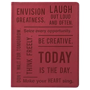 Caderno de diário grande forrado Eccolo, capa flexível, diário de escrever, 256 páginas pautadas em marfim, marcador de fita, plano, tamanho de mesa para trabalho ou escola, hoje é o dia (cor de vinho, 8 x 10 polegadas) — O caderno grande para mulheres e homens da Eccolo é a versão moderna e divertida do caderno clássico. Chique e colorido, este notebook profissional tem tudo o que você precisa para ser seu companheiro diário. Tamanho da mesa de escritório, capa flexível, estilo e praticidade — O diário forrado Eccolo costurado pela Smyth apresenta 256 páginas de papel 80GSM sem ácido marfim. A alta compatibilidade de tinta do papel perfeitamente texturizado ajuda a evitar vazamentos, desbotamento ou fantasmas ao escrever com a maioria das canetas, lápis ou marcadores. Com um design plano, as capas estéticas e vibrantes do caderno flexível o tornam o diário dos sonhos para escrever. Ideal para usuários destros e canhotos. Registrar no diário, fazer anotações e planejar nunca foi tão conveniente. O caderno para todos - O diário 8 por 10 apresenta uma variedade de combinações coloridas, pastéis e vibrantes, diferentes texturas e materiais premium e citações inspiradoras que o animarão e ajudarão na autorreflexão e na produtividade. Seus cantos arredondados e capa dura resistente fazem deste lindo diário um ótimo companheiro para a vida cotidiana. Confortáveis de segurar e transportar, basta colocá-lo em uma bolsa ou mochila e pronto - esses cadernos versáteis e bonitos são ideais para seu material de escritório ou material escolar. Adequado como diário, diário com marcadores, caderno escolar ou agenda, o caderno de capa flexível é a ferramenta certa para aumentar a produtividade do escritório