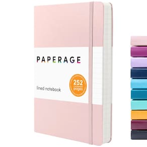 O diário certo pode ser o começo de um ótimo projeto. É por isso que a PAPERAGE projeta produtos de papelaria e de escritório com estilo e utilidade em mente. Nossos cadernos de diário pautados vêm em um arco-íris de lindas cores para você escolher. Com um prático tamanho de 5,7 polegadas por 8 polegadas, cabe facilmente em sua mochila ou sacola para manter o controle de notas, listas e tarefas em qualquer lugar. Este caderno de capa dura pautado contém 252 páginas de espessura e páginas resistentes. Nosso papel premium de 100 g/m2 sem ácido é mais espesso do que os cadernos comuns, então você pode usar a maioria das canetas sem passar fantasmas ou vazar. O PAPERAGE oferece artigos básicos de papelaria e escritório que se concentram na qualidade, acessibilidade e criatividade. Nossa missão é fazer suas ideias brilharem! Fabricamos produtos de qualidade que mostram sua criatividade, ajudam você a ser produtivo e ajudam a organizar sua vida. Dê vida à sua próxima grande ideia com o PAPERAGE. - DIÁRIO DE CAPA DURA MAIS VENDIDO COM MAIS PÁGINAS: este caderno forrado de 5,7 polegadas por 8 polegadas possui 252 páginas numeradas, capa durável de couro vegano, bolso interno expansível, abas adesivas reposicionáveis, etiquetas adesivas, marcador de fita e faixa elástica. - PAPEL PREMIUM: feito com papel de alta qualidade, 100 g/m2, sem ácido, na cor marfim claro. Nosso papel de diário é mais grosso do que os cadernos comuns, então você pode usar a maioria das canetas, lápis e marcadores sem passar fantasmas e vazar. Inclui 16 páginas perfuradas. - Design plano para facilitar a escrita: nosso caderno encadernado foi projetado para ficar plano, facilitando a escrita para usuários destros e canhotos. Registrar no diário, fazer anotações e planejar nunca foi tão conveniente. - CORES VIBRANTES E OUSADAS: nossos cadernos são projetados em uma variedade de cores bonitas e divertidas, disponíveis em uma seleção de estilos de página, incluindo alinhado (para anotações), em branco (para esboçar), pontilhado (para diário com marcadores) e gráfico (desenho). - Bolso interno com etiquetas e abas extras: inclui um bolso de armazenamento interno expansível com 2 folhas de abas coloridas reposicionáveis para organizar seu caderno e 1 folha de etiquetas adesivas para personalizar a capa e a lombada do diário.