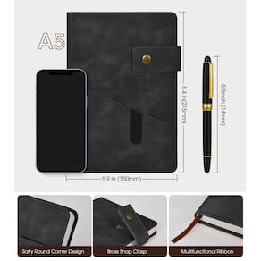 ??Design reforçado?— Design de bolso reforçado e capa encadernada em papelão, a fivela de metal ajuda a manter o caderno fechado com segurança, facilitando a escrita no caderno de praticamente qualquer lugar. Este caderno oferece uma experiência de escrita de alta qualidade. Bolso expansível reforçado para guardar notas soltas, cartões de visita, recibos, telefones ceres ou outros itens pequenos.
