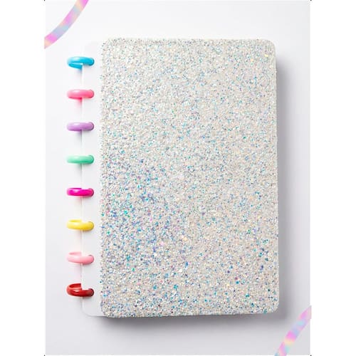 O Caderno de Disco Glitter é mais do que um simples item de papelaria; é uma ferramenta de produtividade personalizada. Sua capa dura com acabamento texturizado em glitter oferece alta resistência e um toque sofisticado. O grande diferencial está nos seus discos em formato de coração, que permitem a total customização: reorganize seções, adicione refis ou remova anotações com facilidade. Com tamanho compacto A5, ele é o companheiro ideal para levar na bolsa ou mochila, garantindo que suas ideias estejam sempre seguras e brilhantes.