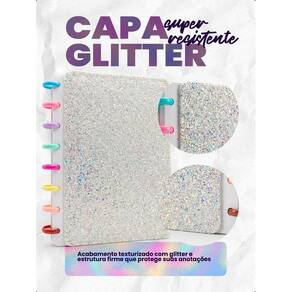 Capa Dura de Alta Resistência: Acabamento em glitter texturizado que une durabilidade e elegância.