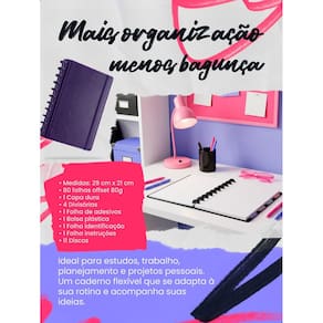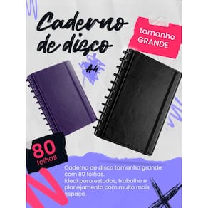 Reinvente sua forma de organizar estudos e projetos com a liberdade do sistema de discos Cansado de cadernos engessados onde você não pode mudar nada de lugar Conheça o caderno de disco grande a4: a união perfeita entre a elegância da capa dura e a versatilidade total. Adicione, remova e reorganize suas folhas e acessórios sempre que precisar, criando um setup exclusivo que acompanha o seu ritmo. O caderno de disco tamanho grande/a4 é a ferramenta definitiva para quem precisa de espaço e flexibilidade. Com acabamento premium em textura couro e fechamento em elástico, ele oferece segurança para o transporte e um visual clean para qualquer ambiente. Seu grande diferencial é o sistema de 11 discos, que permite que as folhas sejam retiradas e recolocadas sem rasgar e sem perder a fixação. Ideal para estudantes que precisam separar matérias, profissionais que organizam diferentes projetos em um só lugar ou para quem ama o método de planejamento personalizado. Sistema reposicionável: retire e coloque folhas onde quiser sem danificar o papel, garantindo total personalização. Tamanho a4 grande : medidas de 29x21cm, oferecendo a maior área de escrita para estudos intensos e projetos detalhados. Capa dura premium: proteção robusta com acabamento sofisticado e fechamento em elástico para manter tudo no lugar. Organização completa: acompanha 4 divisórias plásticas, bolsa para documentos e folha de identificação inclusa. Papel de alta gramatura: folhas offset 80g que garantem uma escrita macia e evitam que a tinta da caneta atravesse o papel. Estrutura completa: equipado com 11 discos resistentes que permitem a rotação de 360 graus da capa, economizando espaço na mesa. Versatilidade total: perfeito para faculdade, cursos, home office, planejamento estratégico ou bullet journal. Marca: Não Informado Ean: 7892903210555