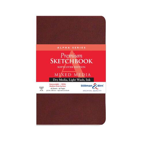 Stillman & Birn Caderno de desenho de capa macia da série Alpha, 14 cm x 21,6 cm, 150 gsm (pesado), papel branco, superfície de grão médio