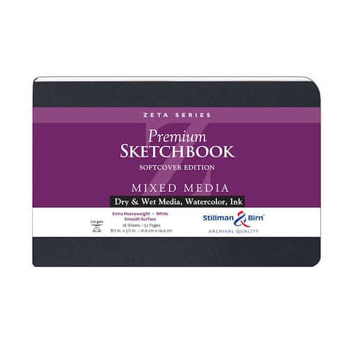 Stillman & Birn Caderno de desenho de capa mole da série Zeta, 21,6 cm x 14 cm, 270 gsm (peso extrapesado), papel branco, superfície lisa