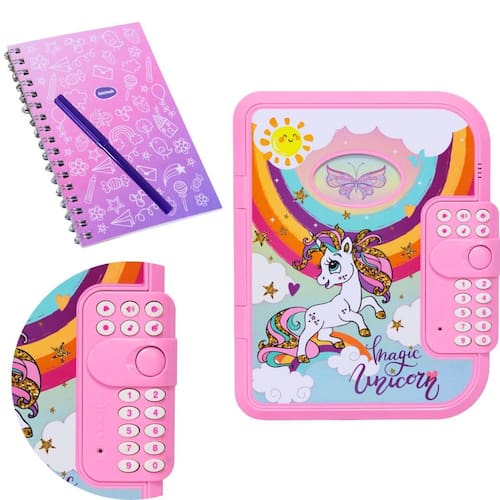Caderno diário com cadeado segredo senha fechadura-castela Descrição do produto Guarde seus segredos com estilo o castela diário com senha rosa cbs1045 é perfeito para crianças que adoram escrever, desenhar ou anotar suas ideias em um lugar só delas. Com senha manual, oferece mais privacidade e acompanha caneta exclusiva. Para resetar a senha, basta remover as pilhas. Diversão e segurança em um só produto