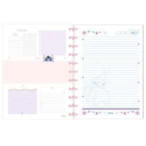 O Stitch (também conhecido como Experimento 626) é um dos personagens mais queridos e divertidos do universo da Disney. O Caderno Discbook busca retratar o personagem no mundo das redes sociais, com elementos e cores características em sua composição.Detalhes:1 opção de capaAdesivo EspecialBolsa PlásticaCapa em TecidoDisco RosaFormato: 200 x 275Gramatura: 90 g/m²Guarda DecoradaHot StampingN° de FLS: 80 (1 matéria) e 160 (10 matérias)Pauta Decorada
