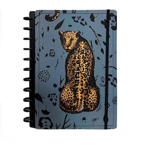 Caderno Disko Onça G 210x280mm c/80fls Conheça o caderno Diskô, um caderno prático e personalizável que se adapta às suas necessidades, possibilitando adicionar, remover e reorganizar as folhas como quiser. Possui um sistema de encadernação inovador, que usa discos para prender as folhas do seu caderno.