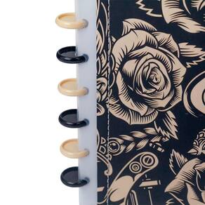 O caderno contém: - Capa e contracapa rígidas com impressão em papel couché de 150g para garantir durabilidade e estilo. - Elástico de fechamento: para manter o caderno fechado com segurança. - 80 folhas offset de 90g: sendo 60 folhas pautadas e 20 folhas lisas brancas. - 9 discos: para fixação da capa, contracapa e das folhas.