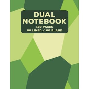 Caderno duplo: papel em branco e pautado para escrever e esboçar - 120 páginas (60 páginas pautadas e em branco alternadas pela faculdade) - 8,5 x 11 - Diário de formas geométricas verdes
