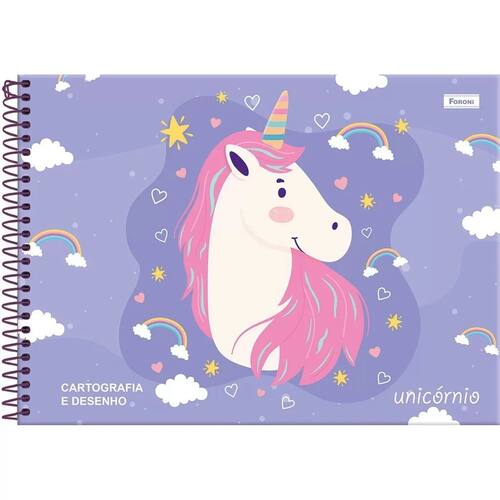 Caderno Escolar de Cartografia e Desenho Unicórnio Espiral 80 Folhas Fofo Colorido Mágico Foroni - COR: LILÁS