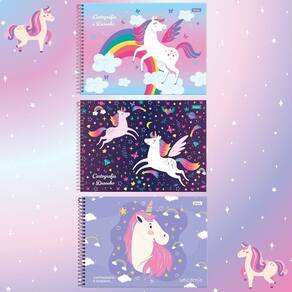 O Caderno Brochura Capa Dura Unicórnio é um clássico que encanta a todo momento, com elementos mágicos e muitos arco-íris. Solte sua imaginação com muita cor e diversão.