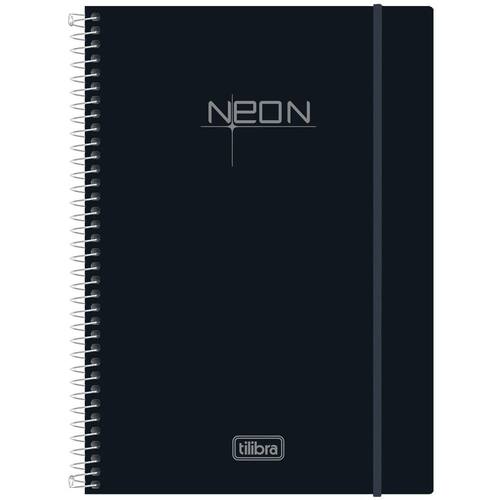 01 Caderno Espiral Capa Dura 10 Matérias 200 Folhas Neon Preto