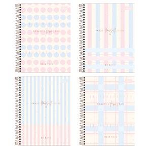 Possui 160 folhas divididas em 10 matérias, capa dura com detalhe metalizado, parte interna decorada, bolsa de papel decorada, folha com adesivos funcionais e folhas pautadas destacáveis.