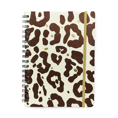 O Caderno Espiral Melissa Pautado 17x24 Onça é perfeito para estudos, trabalhos e ideias.