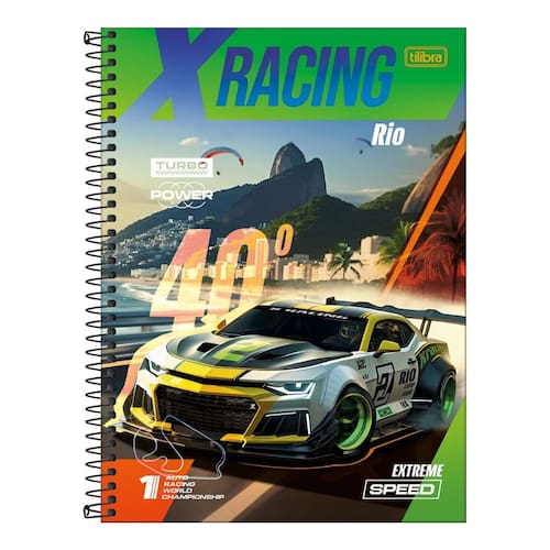 O Caderno Espiral Capa Dura Universitário 10 Matérias X-Racing 160 Folhas da Tilibra é perfeito para você que busca uma opção com cenários impressionantes e carros estilizados.