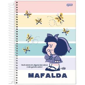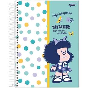 Capas enviadas de forma , conforme disponibilidade em . Caderno espiral universitário - mafalda mafalda foi uma tira escrita e desenhada pelo cartunista argentino quino. As histórias, apresentando uma menina mafalda preocupada com a humanidade e a paz mundial que se rebela com o estado atual do mundo, apareceram de 1964 a 1973, usufruindo de uma altíssima popularidade na américa latina e europa. Mafalda: a personagem principal, uma menina de seis anos de idade, que odeia sopa e adora os beatles e o desenho pica-pau. Ela se comporta como uma típica menina na sua idade, mas tem uma visão aguda da vida e vive questionando o mundo à sua volta, principalmente o contexto dos anos 1960 em que se encontra. Tem uma visão mais humanista e aguçada do mundo em comparação com os outros personagens. Especificações técnicas Laminação fosca Hotstamping Verniz reserva Bolso em papel Cartela de adesivos Miolo decorado Disponível em: caderno universitário capa dura 10 matérias 160 folhas Marca: Não Informado