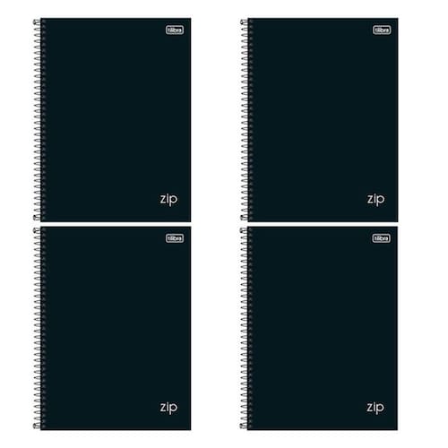 Caderno Espiral Universitário Zip 80 Folhas Preto 4 Unidades - Tilibra