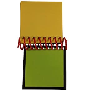SteveNotebook feito à mão com 50 páginas de papel artesanal amarelo e bobina vermelha sem BPA. Vem com 1 giz de cera preto gigante com listras verdes e 1 pacote de 120 adesivos com estampa de pata. Tamanho da folha = 4 polegadas x 4 polegadas. Tamanho do caderno = 4,25 polegadas de largura x 5 polegadas de altura (incluindo bobina) - Tamanho de giz de cera = 5 polegadas de comprimento - Adesivo de pata = 1 polegada x 1 polegada (tamanho de um quarto) (os adesivos são recortados com estampa de pata) - Papel de recarga para o caderno, lápis de cor adicionais e pacotes de adesivos estão disponíveis para venda - visite nossa loja na Amazon