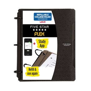 Five Star Caderno flexível recarregável + aplicativo de estudo, papel pautado universitário, anéis TechLock de 2,5 cm, bolsos, abas e divisórias, capacidade para 200 folhas, preto (29328AA2) - Dura o ano todo. GARANTIDO! - Digitalize, estude e organize suas anotações com o aplicativo Five Star Crie flashcards instantâneos e sincronize suas anotações com o Google Drive para acessá-las em qualquer lugar a partir de qualquer dispositivo. - Reutilize várias vezes! Este caderno recarregável permite adicionar, remover e reorganizar papéis em um instante. Vem pré-preenchido com 60 folhas pautadas universitárias. - Anéis patenteados TechLock não quebram ou desalinham. Os anéis grandes de 2,5 cm comportam até 200 folhas. - Vem com 2 divisórias NotePocket para armazenar folhas soltas e 3 divisórias NoteProtector. A capa durável ajuda a proteger seu conteúdo contra danos. Disponível em preto.