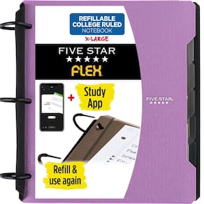 Five Star Caderno flexível recarregável + aplicativo de estudo, papel pautado universitário, anéis TechLock de 3,5 cm, bolsos, abas e divisórias, capacidade para 300 folhas, roxo (29324AB6) - Dura o ano todo. GARANTIDO! - Digitalize, estude e organize suas anotações com o aplicativo Five Star Crie flashcards instantâneos e sincronize suas anotações com o Google Drive para acessá-las em qualquer lugar a partir de qualquer dispositivo. - Reutilize várias vezes! Este caderno recarregável permite adicionar, remover e reorganizar papéis em um instante. Vem pré-preenchido com 80 folhas pautadas universitárias. - Anéis patenteados TechLock não quebram ou desalinham. Os anéis extragrandes de 3,8 cm comportam até 300 folhas. - Vem com 3 divisórias NotePocket para armazenar folhas soltas e 4 divisórias NoteProtector. A capa durável ajuda a proteger seu conteúdo contra danos. Disponível em ametista roxa.