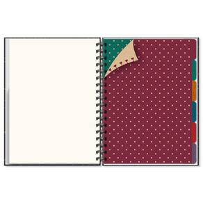 - 6 divisórias removíveis coloridas e estampadas em papel Kraft 200g/m;