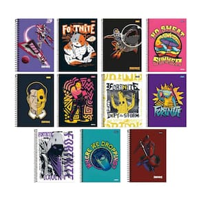 Atenção: Capas Enviadas de Forma de Acordo Com a Disponibilidade do O Caderno Universitário Capa Dura Fortnite busca retratar o game através de suas 8 opções de capas - um jogo de combate entre 100 jogadores que combina criação, diversão e muito humor. 12 opções de capas Adesivo Especial Bolsa Plástica Espiral Preto Formato: 200 x 275 Forro Branco Gramatura: 56 g/m Laminação Fosca N de FLS: 80 1 matéria Pauta Básica Verniz High Gloss