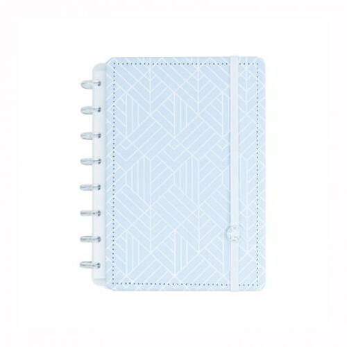 Um design único e sofisticado em azul sólido e detalhes em high print. A experiência fica completa com as folhas azuis linhas brancas. um diferencial para estudantes e apaixonados por papelaria.
