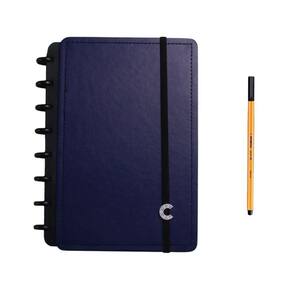 Caderno Inteligente A5 Pequeno Dark Blue - 80 Folhas Caderno Inteligente A5 Pequeno Dark Blue - 80 Folhas A5 Pequeno: Capa e contracapa rígidas, 01 bolsa plástica, 01 folha de instrução de uso e manuseio, com refis e acessórios da marca disponíveis no verso, 01 folha de identificação com calendário no verso, 04 divisórias com abas para identificação 02 pretas e 02 transparentes , 80 folhas offset 90g 60 folhas pautadas e 20 folhas lisas brancas para impressão , 01 suporte com elástico para 01 caneta ou 01 lápis e discos M + elástico. tamanho: 25,5cm X 19cm