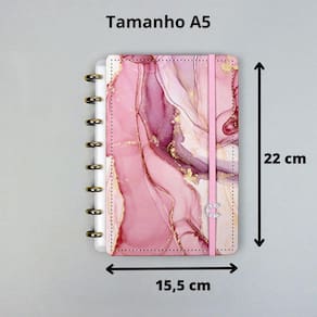 O caderno A5 é do tamanho 15,5 x 22,0 cm