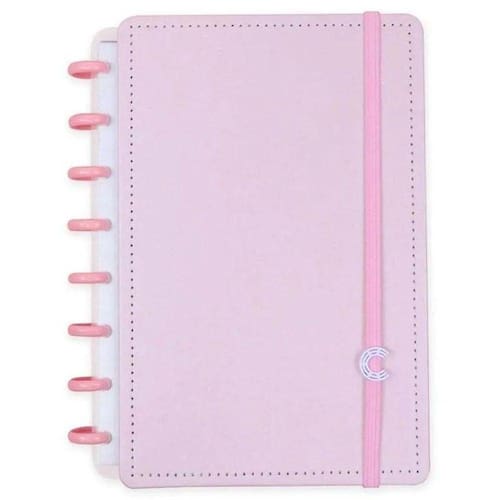 Caderno Inteligente Fairytale A5 80 Folhas:- Caderno que você tira e coloca folhas quando quiser;- Capa e contracapa rígidas com a cor mais amada, rosa;- 01 bolsa plástica;- 01 folha de instrução de uso e manuseio;- 01 folha de identificação com calendário no verso;- 04 divisórias com abas para identificação 02 pretas e 02 transparentes ;- 80 folhas offset 90g 60 folhas pautadas e 20 folhas lisas brancas para impressão ;- 01 suporte com elástico para 01 caneta ou 01 lápis;- 08 Discos M + elástico rosa. ESPECIFICAÇÕESMarca: Caderno InteligenteEncadernação: DiscosFormato: 160 x 220 mmNúmero de Folhas: 80
