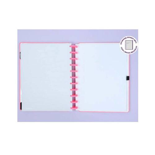 O modelo G+ junta o tamanho expansivo do Caderno Inteligente Grande com a capacidade ainda maior de armazenamento dos discos G para criar a maior combinação possível do Caderno Inteligente. E agora, o CI mais pedido por estudantes tem também uma versão com linhas brancas E claro, poucas cores no mundo são tão lindas e cheias de atitude quanto o rosa E para você arrasar nos estudos e também no visual dos seus materiais, pode apostar no caderno universitário rosa sem medo O modelo All Pink G+ vem com capa, discos e elásticos todos no mesmo tom incrível de rosa, para levar muito mais alegria para a sua rotina. Conheça também nossas outras cores, tamanhos e combinações de caderno, ou monte o seu na nossa seção Do It Yourself DÚVIDAS FREQUENTES: Caderno Grande ou G+, qual a diferença O caderno G+ é uma variação do caderno grande também conhecido como tamanho universitário , perfeito para quem precisa usar muitas folhas, os dois tem a mesma dimensão de capa e contra 21,5cm X 28cm, o que diferencia é o tamanho dos discos e a quantidade de folhas que cada um deles comporta: