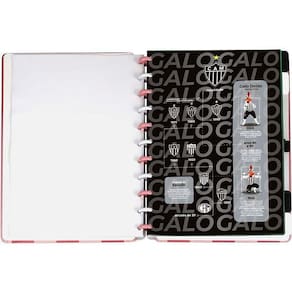 Com capa exclusiva em degrade de faixas rosas e discos e elastico branco e rosa, ele e o caderno do Atletico que voce sempre sonhou em ter, versatil e muito pratico para qualquer necessidade. E tem mais: essa edicao especial tambem vem com folha de adesivos, folhas exclusivas com hino, biografia e escalacao, divisorias e folhas pautadas personalizadas oficiais do clube O que contem: Capa e contracapa rigidas, 01 bolsa plastica, 01 folha de instrucao de uso e manuseio, com refis e acessorios da marca disponivei