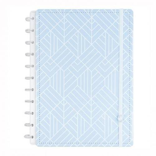 Um design único e sofisticado em azul sólido e detalhes em high print. A experiência fica completa com as folhas azuis linhas brancas. um diferencial para estudantes e apaixonados por papelaria.